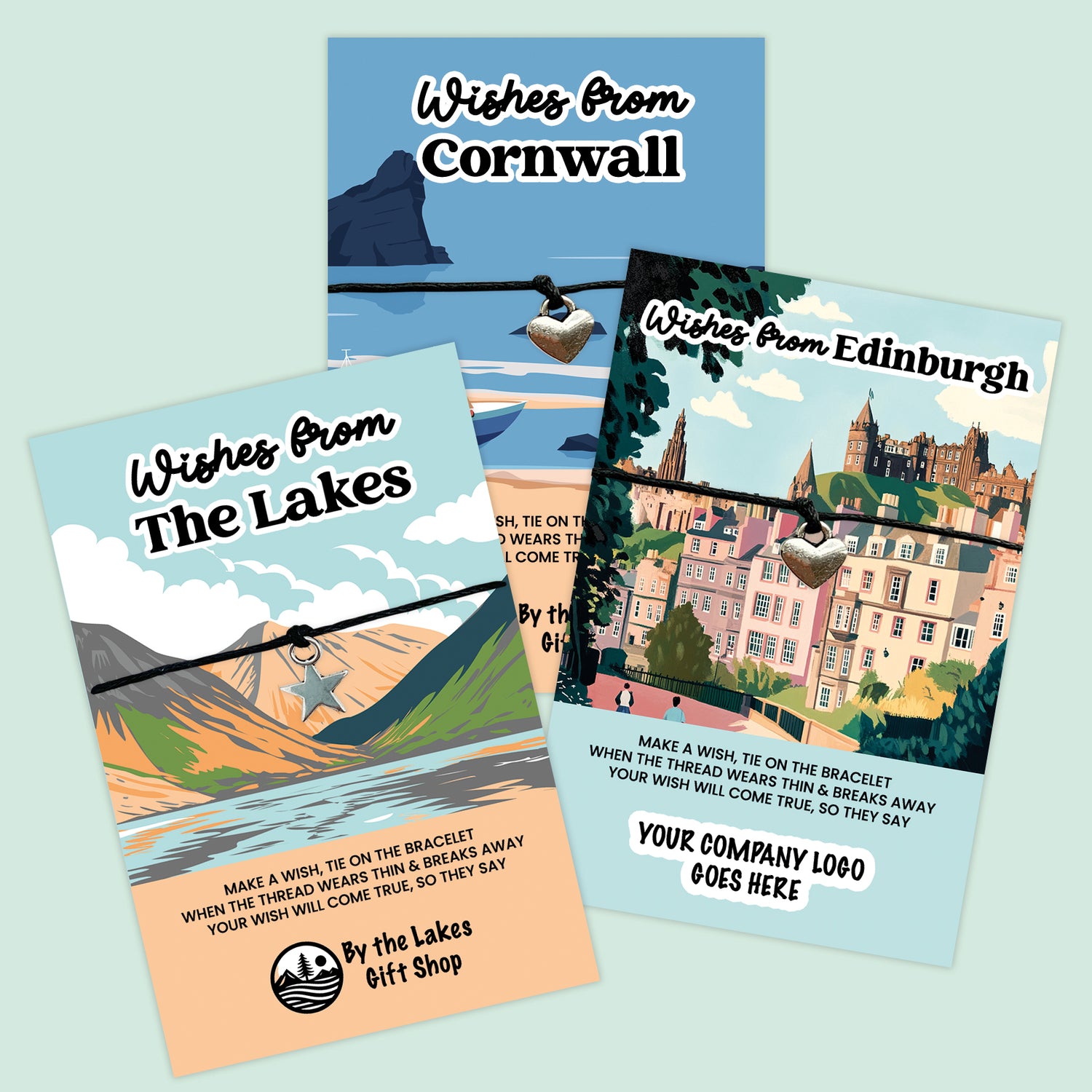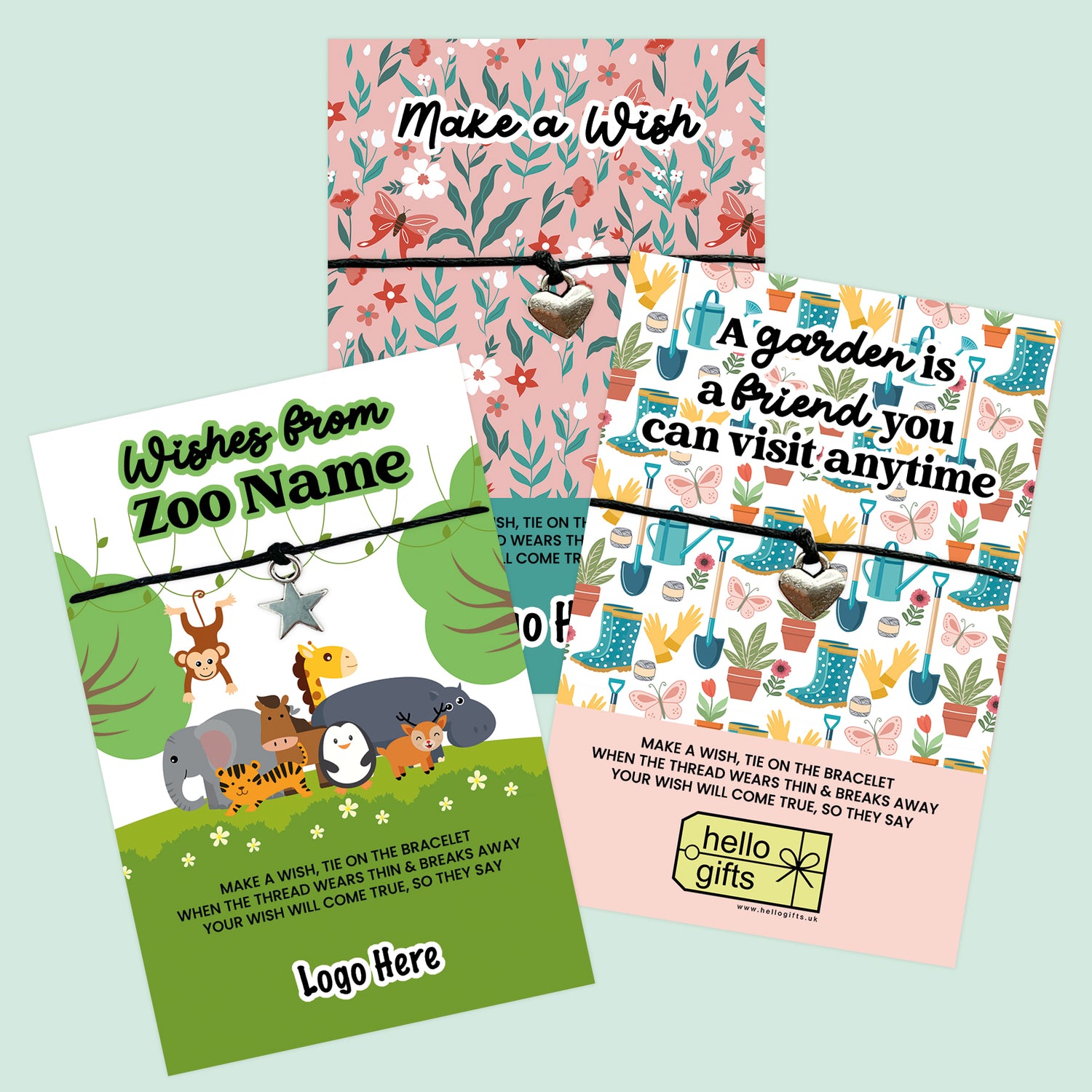 Design your own WishString bracelet with fully customisable wording, colours, and imagery – including your business logo. The perfect branded keepsake or retail product to represent your shop, brand, or location beautifully.